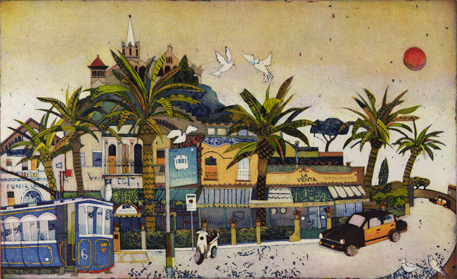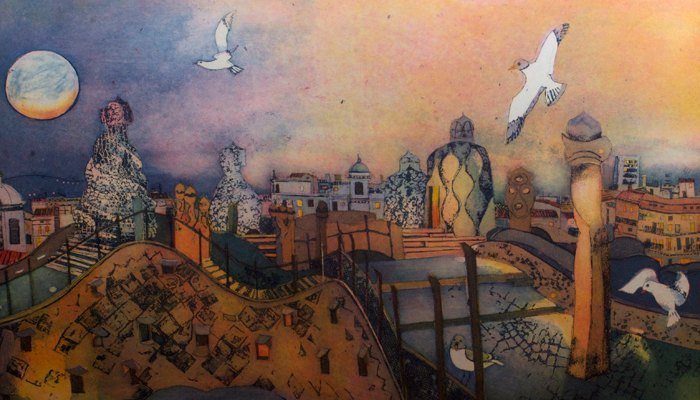 2011, Barcelona desde Miramar, Plattengröße 33 x 53 cm, Papierformat 50 x 70...