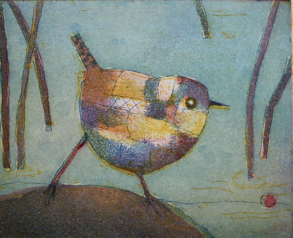 Kleiner Vogel unterwegs, 2024 , Papierformat 24 x 30cm, Plattengröße 12 x 15 cm