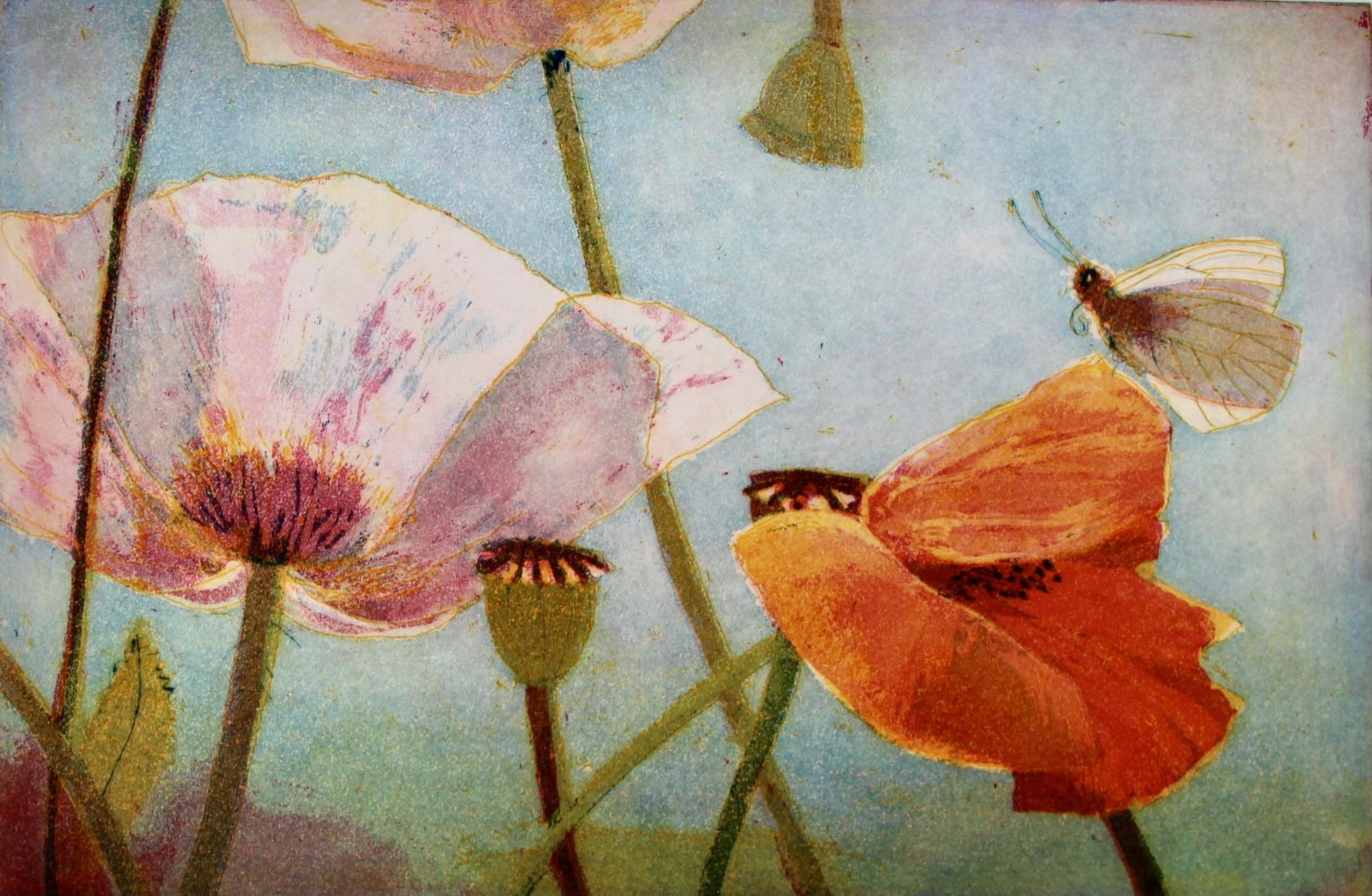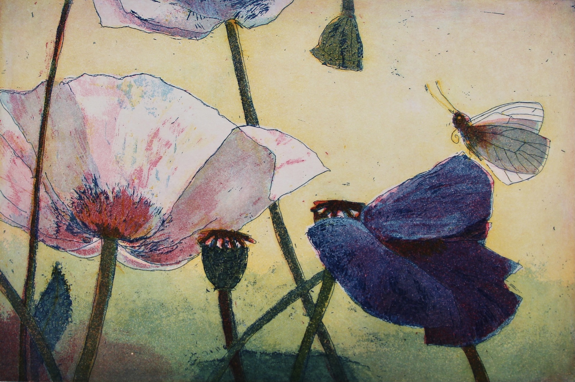 Blauer Mohn, 2021, Plattengröße 20 x 30 cm, Papierformat 38 x 45 cm