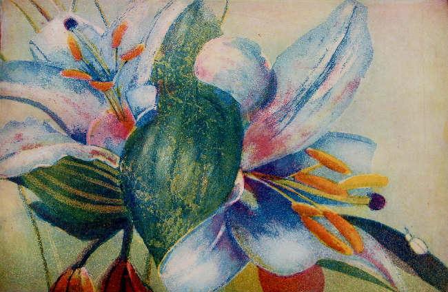 Weiße Lilien, 2022, Plattenformat 20 x 30 cm, Papierformat 40 x 45,