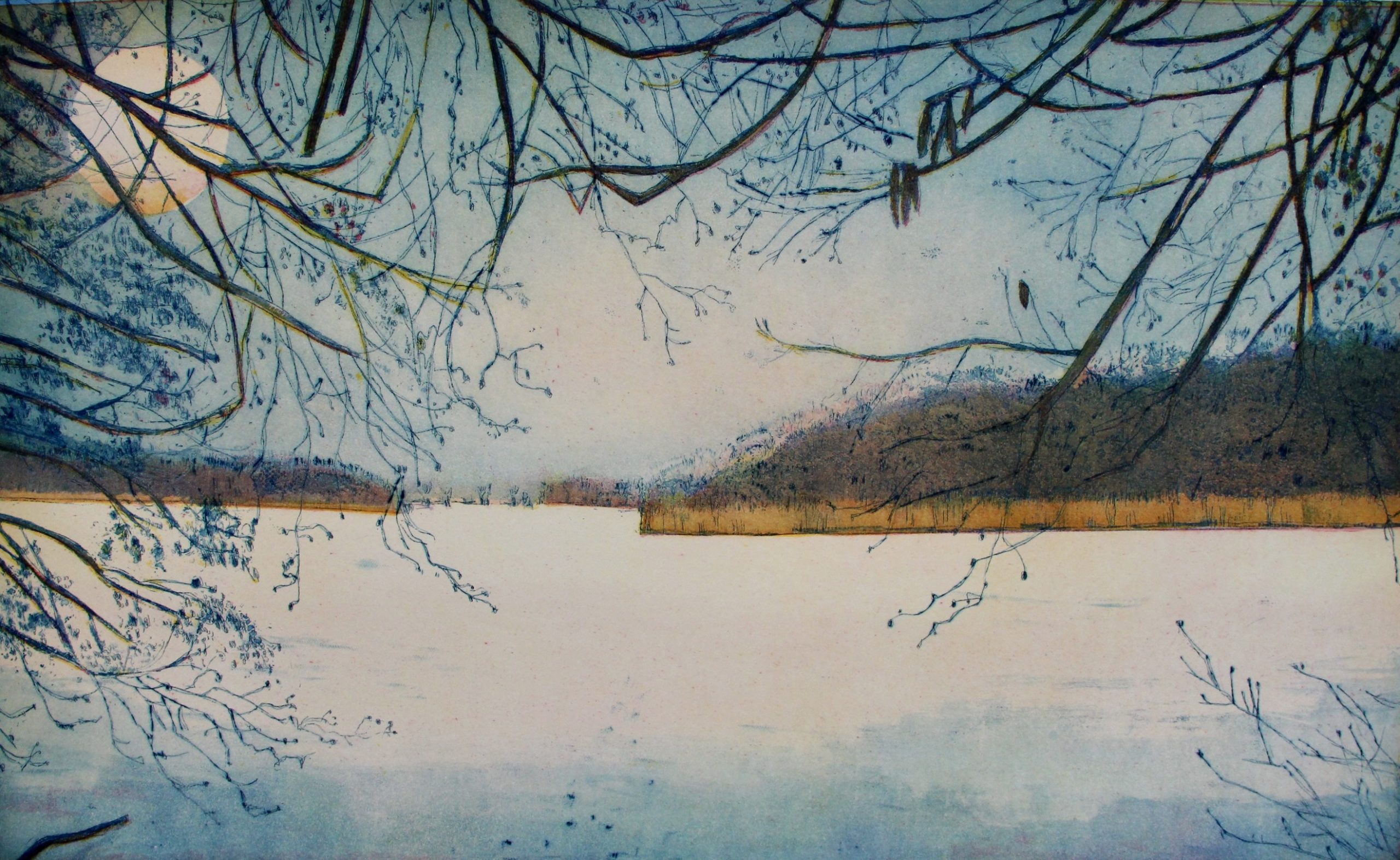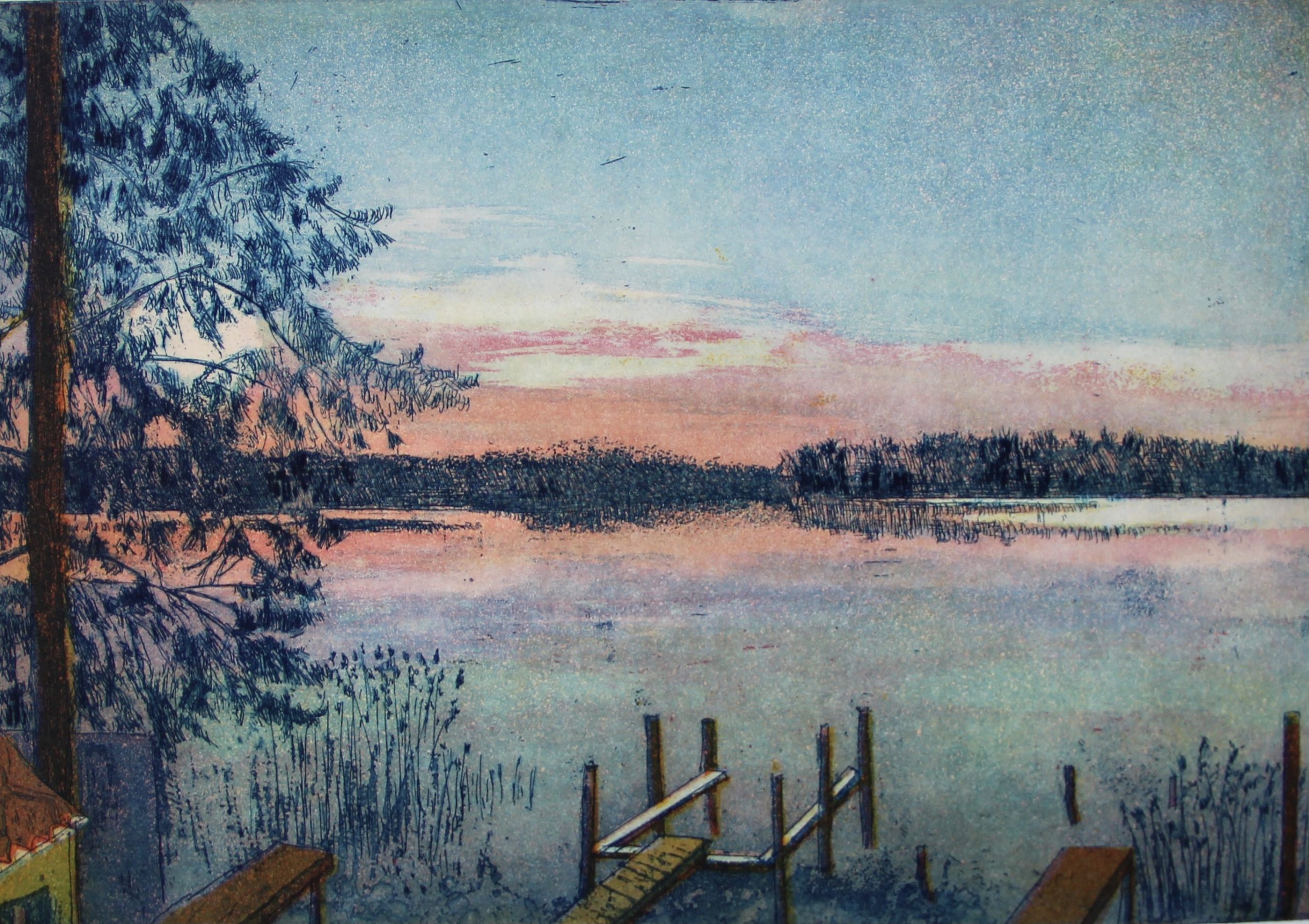 Abendsee, 2021, Papierformat 40 x 45 cm, Plattengröße 20 x 28 cm