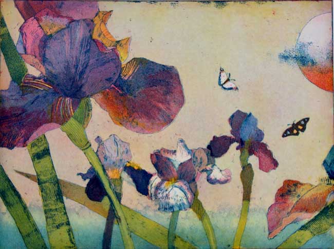 Blaue Iris, 2019, Papierformat 50 x 60 cm, Plattengröße 30 x 40 cm