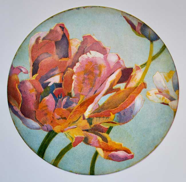 Flammentulpe, 2020, Plattendurchmesser 45 cm, Papierformat 67 x 67cm