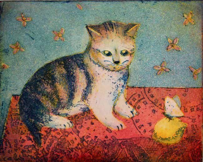 Junges Kätzchen, 2019, Papierformat 24 x 30 cm, Plattengröße 12 x 15 cm
