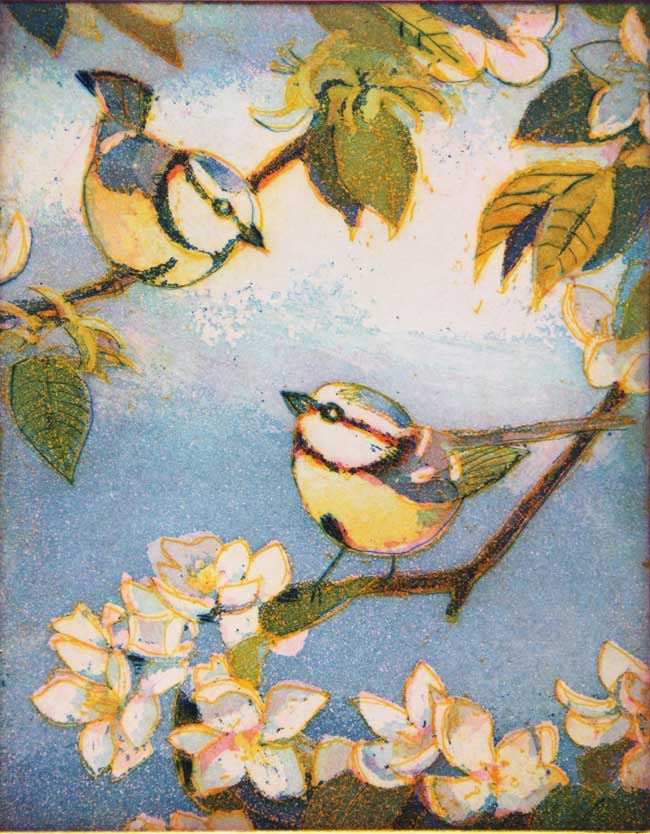 Frühlingsbesuch 2018, Papierformat 24 x 30 cm, Plattenformat 12 x 15 cm