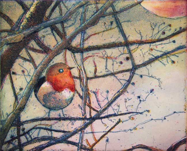 Rotkehlchen 2018, Papierformat 24 x 30 cm, Plattengröße 12 x 15 cm